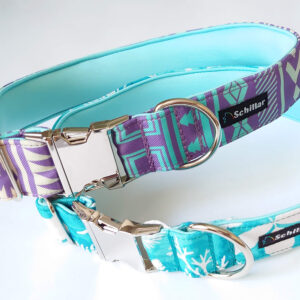 Obroża wykonana jest z mocnej taśmy nośnej pokrytej nadrukiem sublimacyjnym. Taśma, z której wykonana jest obroża jest łatwa w czyszczeniu i na długi czas zachowuje swój niepowtarzalny wygląd.